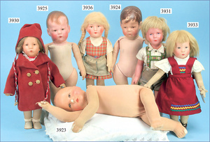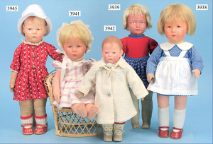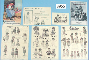 KÄTHE KRUSE Konv. Prospektblätter, B71, in der Knickstelle in 2 Teile gerissen, Du Mein, Friedebald u. Ilsebill, B69, KÄTHE KRUSE Neue Stoffpuppen, 1935/36, Du Mein, Puppe Nr. I, Friedebald u. Ilsebill, B57, Neue KÄTHE KRUSE Puppen, Puppe Nr. I, Deutsches Kind, B61, 1934/35, Puppe Nr. I, sowie deutsches Kind, sowie Das neue Puppenkleiderbuch, Ausstattungshaus Louis Lehr, Herborn, Anleitung zu KÄTHE KRUSE Kleidern, 1 Werbekarte KÄTHE KRUSE Puppe XIIH, das Notstandskind, sowie Güthermanns Puppenschnittmuster (n. a. T. f.)