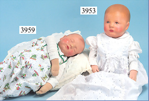 KÄTHE KRUSE Träumerchen, 55 cm, Magnesitkopf, geschl. Augen, schöne Modellierung, beschwerter Trikotkörper, mit Bauchnabel u. Poloch, Nase u. Wangen etwas ausgebessert, 1 Finger ein wenig berieben, sonst gut
