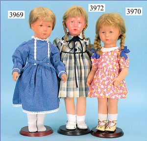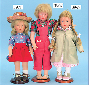 KÄTHE KRUSE Puppenpaar, deutsches Kind, 36 cm, 60er Jahre, Kunststoffkopf, Trikotkörper, Orig.-Kleidung, Schuhe u. Strümpfe, unbespielt