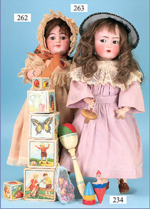 SIMON & HALBIG 1009 Dep. Germany, außergew. Biskuitporzellankopf-Puppe, Biskuit-Kurbelkopf, braune festeingesetzte Glasaugen, durchst. Ohren, leichte Brandlinien hinter den Ohren (unbedeutend), geschl. Mund, 2- farbig bemalt, schöner ausgeformter Gliederkörper, Farbabweichung an den Händen, alte Kleidung, alte Schuhe, alte Perücke, besonders schöner Ausdruck, 45 cm