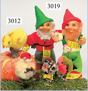 STEIFF, Zwerge, Lucki und Pucki, beide mit Knopf, Schild und Fahne, Pucki Nr. auf der Fahne 8713,03, 14 cm Stehhöhe, braun/grau/rote Filzkleidung, mit grüner Filz-Zipfelmütze, unbespielt, Lucki mit grün/roter Filzkleidung, Nr. auf der Fahne 7660/13, 14 cm, unbespielt