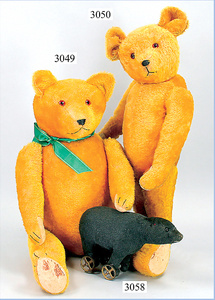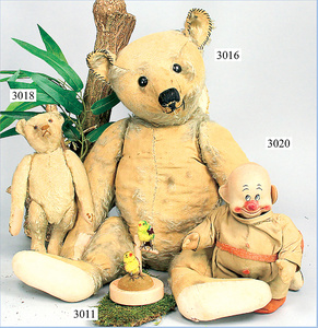 STEIFF, Orig-Teddy, ca. 1945, 32 cm, leicht abgeknickte Arme, gelbes Mohair, Druckstimme defekt, bespielt, an der Ferse wohl 1 x etwas ausgebessert, sonst bespielter aber guter Zust.