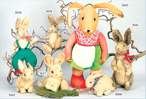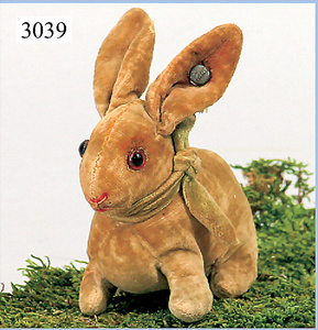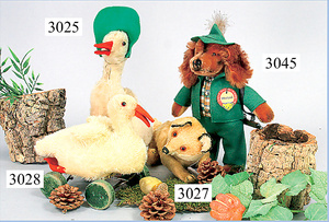 STEIFF, Hasili, mit Knopf und Reste der gelben Fahne, grüne Filzhose, kleinere Fehler an dem rechtem Fuß, 28 cm