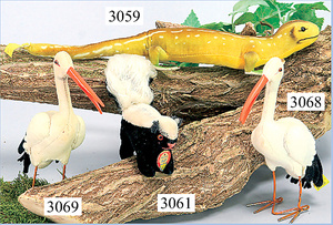 STEIFF, Adebar, mit Knopf, Schild und Fahne Nr. 1017,00, mit Metallbeinen, Stehhöhe 16 cm, guter Zust.