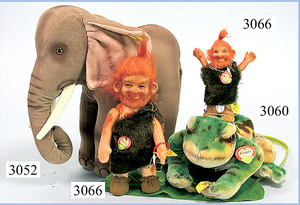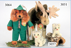 STEIFF, Konv. 3 x Snucki, 1 x mit Knopf, Schild und Fahne Nr. 1312,00, Stehhöhe 12 cm, 1 x Snuki mit Schild, 16 cm, Stehhöhe, guter Zust., 1 x Snucki mit Knopf und Fahne, 1312,00, Stehhöhe 12 cm