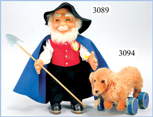 STEIFF, Hirte, mit Knopf, Schild und Fahne, Nr. 7759/35, 36 cm Stehhöhe, mit Schaufel, guter Zust.