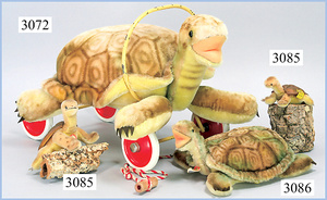 STEIFF, Schildkröte auf Rädern, 50 cm, 50er Jahre, mit Knopf und Fahne, Nr. auf der Fahne 2335.20, einwenig Mohairverlust an einem Fuß sowie leichter Mohairverlust am Kopf oben, Lackfehler an der Griffstange sonst guter Zust.