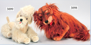 STEIFF, Hund, Hush Puppie, mit Knopf und Fahne, Nr. 4080/22, sitzend, Sitzhöhe 21 cm, guter Zust.