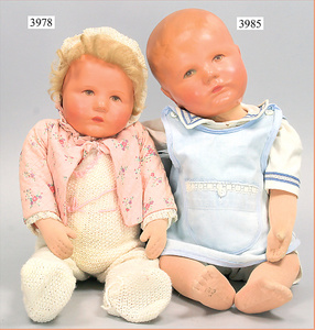 HEUBACH, Heubach im Quadrat 8774, Einbindekopf, seitl. blickende, Intaglio-Augen, pfeifend gespitzter Mund, fein ausmodellierte Ohren, ausmodellierte Haare, Stoffkörper, Masse-Hände, selten
