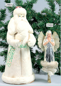 Weihnachtsmann mit Geschenksack, Watte, Gesicht aus lithogr. Oblaten, 11 cm, sehr schöner Zust.