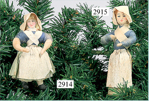 Hollandmädchen, Watte, Gesicht aus lithogr. Oblaten, Kleid aus Krepp, Kopfbedeckung aus Papier, 10,5 cm, schöner Zust.