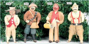 Mann mit roter Weste, Watte, Kopf aus Watte, Weste aus Krepp, Hut aus Karton, 11 cm, selten, schöner Zust.