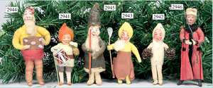 Zwerg mit Spitzhacke, Watte, Gesicht aus Masse, Schürze aus Papier, Hacke aus Papier und Holz, 9,5 cm, sehr guter Zust.