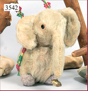 STEIFF, ball elephant, 1934, 9 cm, mohair plush, grey, inventive shaped like a ball, with frill, STEIFF button and bell