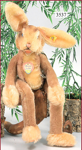 STEIFF, hare, mohair plush, pink (bleached out) , with button, swivel head, 50 cm, produced 1927, good condition, rare size