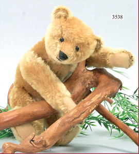 STEIFF, bear, 1908-1933, felt paws in very good condition, nice full mohair, yellow gold, with button and red cloth tag label, number on cloth tag label 5328,2, standing height 41 cm, without damage, very nice expression
