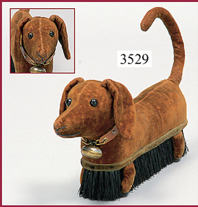 STEIFF, brush badger, 1909, velvet, brown, on 22 cm, caricatured on a clothbrush, leather collar with 7 shiny buttons and bell, very nice original condition