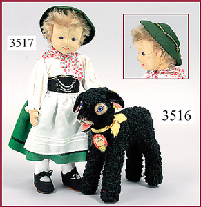 STEIFF, Liesel, woman from Upper Bavaria, jointed felt,, original traditional costume, voice is faulty, inset hairpiece, with long hair, with button, without chest label and cloth tag label, 35 cm, very good condition, 1909-1927, rare, good condition