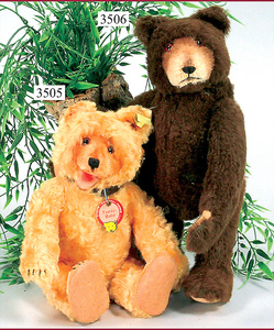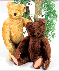 STEIFF, Dickibär, also called brown bear, wool plush, c. 1935-1941 produced, dark-brown jointed, inset snout, made of short light plush, standing height: 31 cm, without button, chest label and cloth tag label, minimally flaws at the felt paw, double press voice, very nice condition, nice full wool plush