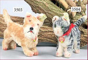 STEIFF, Butch the Coverdog, KFM, with button, chest label and cloth tag label, number on cloth tag label 1317,0, c. 1958, advertising items, standing height 17 cm, without damage