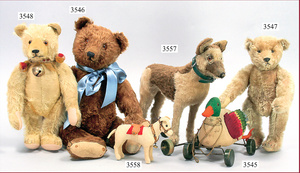 STEIFF, music-Lulac, with button, chest label and cloth tag label, number on cloth tag label 7343,00, c. 1952, music mechanism is intact, without damage, 43 cm