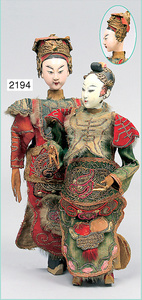Papiermaché-Brustblattkopf-Puppe, 10 cm, Orig.-Bemalung, Lederkörper, einfache Kleidung