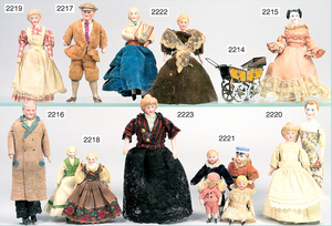 SIMON & HALBIG Puppenstuben-Puppe, 20 cm, Biskuit-Brustblattkopf, braune fest eingesetzte Glasaugen, einfacher Stoffkörper, Biskuit-Arme und -Beine, Kleidung neuer