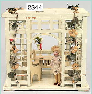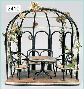 Puppenstuben-Wintergarten, Thonet, 34 cm breit, 33 cm hoch, mit passender Sitzgruppe, ausgef.