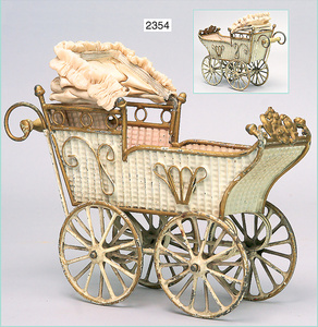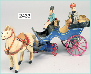 kl. Puppenstuben-Kutsche mit Zinn-Rädern, Fell-Pferd, 24 cm, schöne Deko. für ein kl. Puppenhaus
