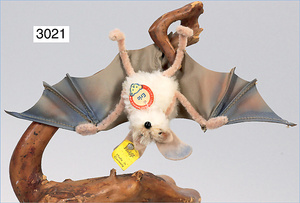STEIFF Fledermaus, Erik, ca., 1960, mit Knopf, Schild und Fahne, Nr., 1310,00, 10 cm, unbespielt