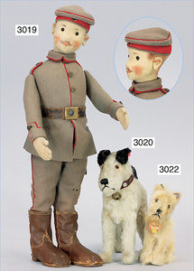 STEIFF Infanterist Unteroffizier, ca.,1914, mit Knopf, 35 cm, gegliedert, Filzkleidung, Orig., Säbel, sehr guter Zust.,
