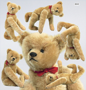 STEIFF Fluffy, ca. 1930, 22 cm, sitzend, drehbarer Kopf, schönes kräftiges Mohair, blau gespritzt, Seidenschleife