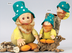 STEIFF Schwefelmännchen, Filzfigur, ca. 1934, 25 cm, Bart aus gespritztem Mohair, ausdrucksvolle Märchenfigur, schöne kräftige Bemalung, grüner Filzhut, freistehend