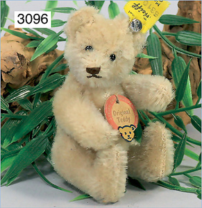 STEIFF Teddy-Baby, ca.1930, 10 cm, mit Knopf, Schild und roter Fahne, Nr. 7308, weißes Mohair, geschl. Mund, absolut unbespielter Zust., selten