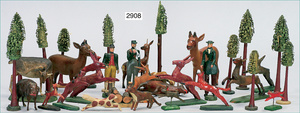 ERZGEBIRGE Jagdszene, Uralt, verschiedene Jäger, Wildtiere in verschiedenen Darstellungen, Hunde, Spanbäume, ca. 30 Teile