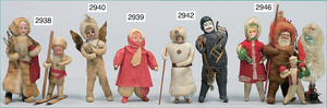 Weihnachtsschmuck, Wattefiguren, Russland, 20er Jahre, 13 Teile, außergew. Darstellungen, Kinder, Tiere, 9,5 cm - 11 cm, ausgefallen