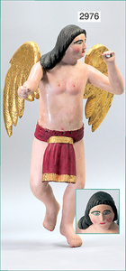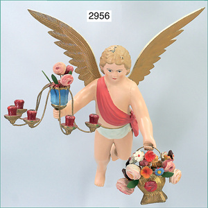 Lichterengel, Holz geschnitzt, ERZGEBIRGE, 55 cm, farbl. Fassung später, 2 Blumenkörbe, in der Hand tragend, Blumenkörbe aufwändig geschnitzt, Orig.-Fassung