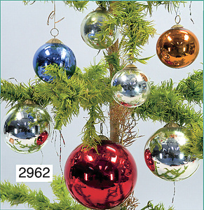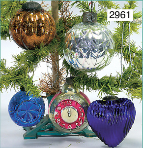 Konv. außergewöhnliche gr. Christbaumkugeln, 3 Kugeln in dickem Glas, 1 Kugel Spiegelglas, Durchm. 9 cm, 1 Kugel in Uhrenform, Durchm. 8,5 cm