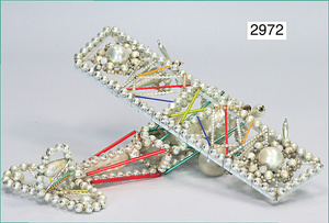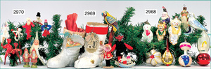 4 Teile Christbaumschmuck, 1 x Sepnitz, Brunnen mit Storch, 1 Taube, Watte, mit eisernem Kreuz, 1 Candycontainer in Helmform, 3 kl. Watte-Karotten