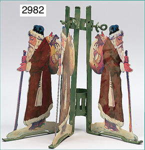 Weihnachtsmann, Hampelmann, 64 cm, mit bunt lithogr. Papier beklebt, wohl 30er Jahre, kl. Beschädigung an der Tafel der re. Hand, sonst gut