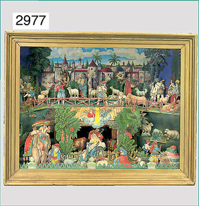 ERZGEBIRGE gr. Papierkrippe im Schaukaste, ca. 1880 evtl. Firma Gotberlet?, Anna Berg, lithogr., geprägt, Pappe, 50 cm x 53 cm