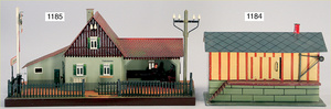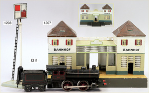 MÄRKLIN Spur 0, 2151, Landbahnhof, 1930/31, Grundplatte 35 cm x 19 cm, Gebäude, Wartehalle, Zaunteile, Schild "Ausgang", Signal, unbespielter Orig.-Zust., im Orig.-Kart., mit 2 Figuren