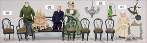 Konv. Puppenstuben-Zubehör, 6-armiger Zinnlüster, 1 Puppen-Fön, Bilderrahmen, 1 Briefwaage, 1 Masse-Papagei