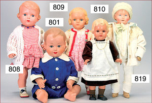 Konv. Porzellan- u. Celluloid-Püppchen, darunter einige Puppenstuben-Puppen, Köpfe gemarkt AM 16, bewegl. Arme u. Beine, anmodellierte Schuhe u. Strümpfe, eingesetzte Glasaugen, 1 x K&R 126, Riss über die Stirn, fest eingesetzte Glasaugen, off. Mund, Zähne, Masse-Stehkörper, 20 cm, Porzellan-Puppe mit aufmodellierter Haube, Stoffkörper, Porzellan-Arme u. -Unterschenkel, Hersteller?, 16 cm, 1 x Minerva Celluloid-Baby, gemarkt 15, u. anderes