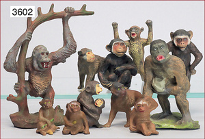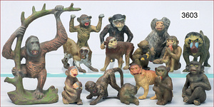 ELASTOLIN Affen, 13 Teile, Zust. 1-2, Gorilla, Schimpansen u.a.