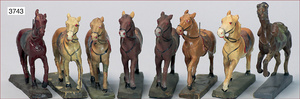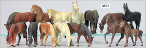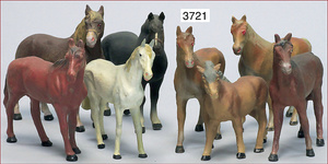 Konv. Pferde, meist ELASTOLIN oder LINEOL, Masse, 14 Teile, Zust. 1-2, minimale Stellen ausgebessert