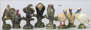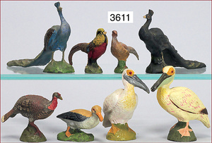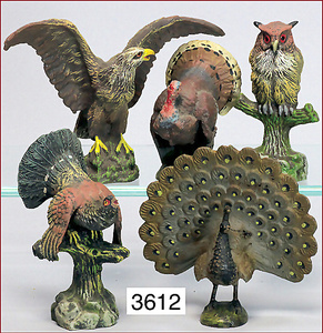 ELASTOLIN, TIPPEL TOPPEL, LINEOL 5 Teile Vögel, Eule, Adler, Pfau, Truthahn, 7 cm - 9 cm, meist Zust. 1-2