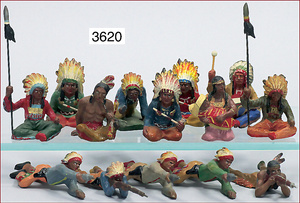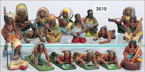 meist ELASTOLIN und LINEOL 19 Teile Indianer, Masse, anschleichend und Lagerleben, meist Zust. 2, dazu 1 Häuptling, Kunststoff