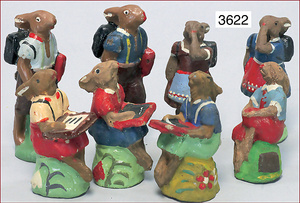 Hasenschule, Masse, 8 Hasenkinder, 7 cm, Zust. 1-2