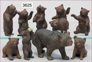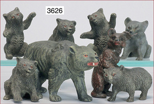 Bärengruppe, Masse, Bär, 10 cm, sowie 7 Jungbären, spielend, 5 cm - 6,5 cm, Zust. 1-2